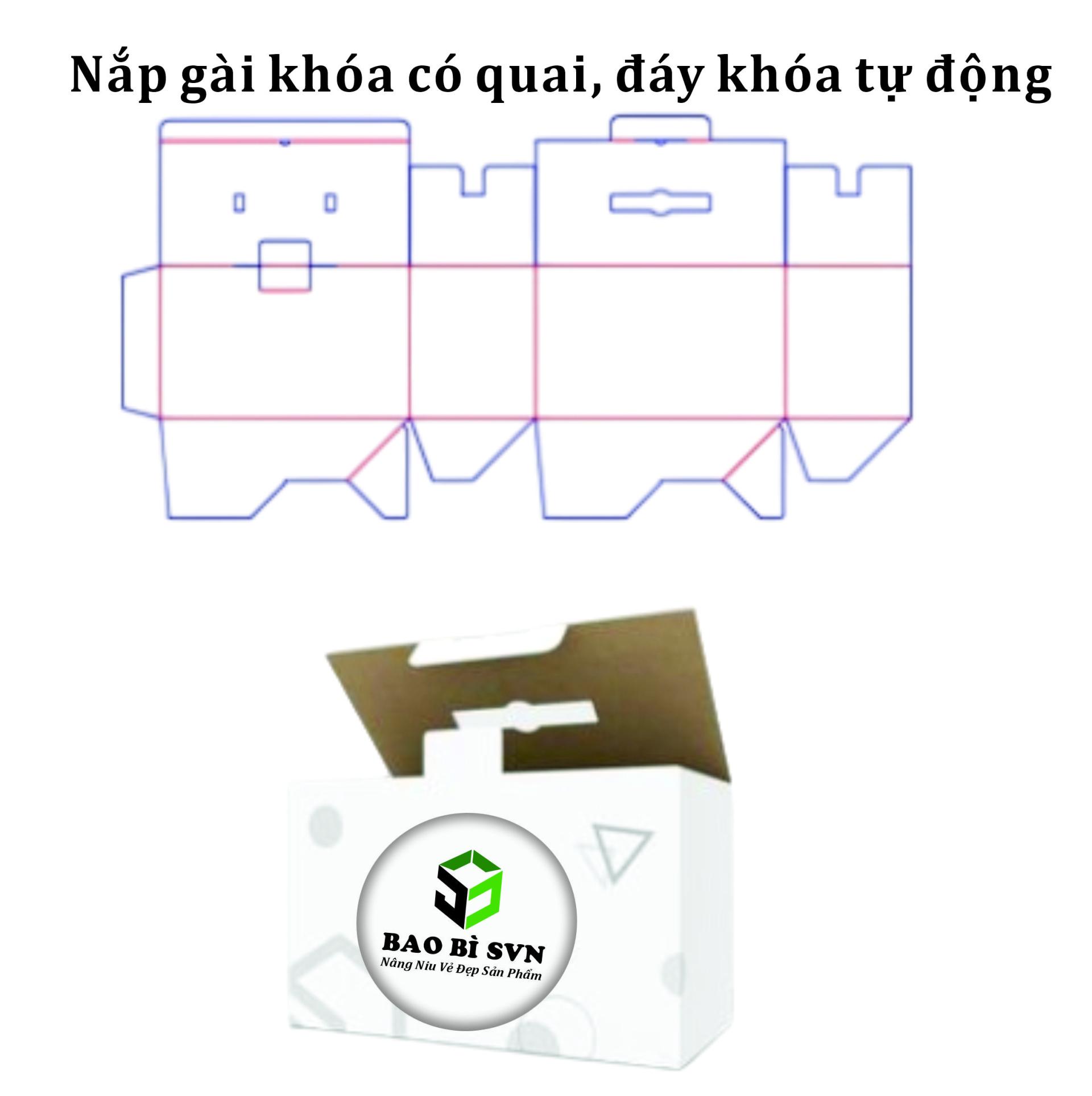 Hộp giấy nắp gài khóa có quai, đáy khóa tự động phù hợp với rất nhiều ngành hàng nhờ tính linh hoạt và tiện dụng: