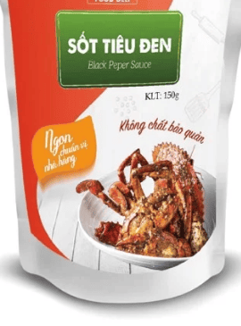 Sốt Tiêu Đen với hương vị hoàn chỉnh, thành phần chủ yếu là tiêu xanh, tiêu đen, nước dùng gà, đường, dầu hào,...
